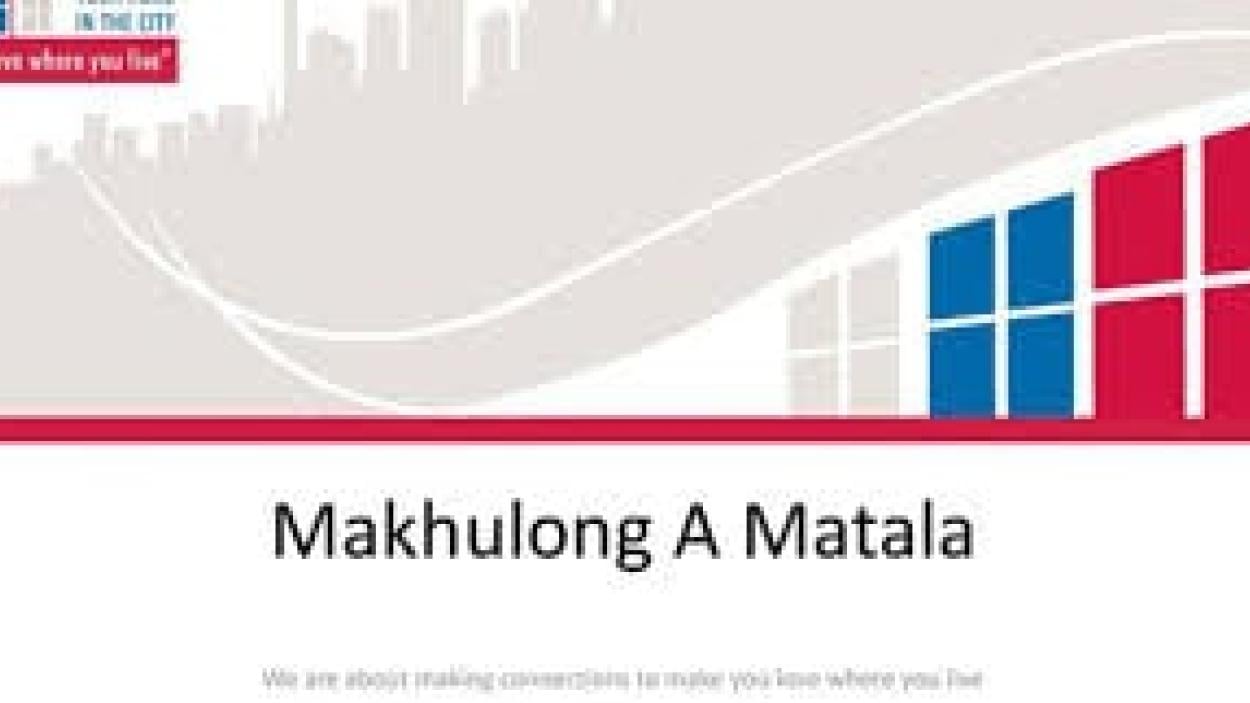 Makhulong A Matala (which is a seSotho term for greener pastures), turns houses into homes, buildings into communities and areas into neighbourhoods. They are established as an entity which focuses on social cohesion and community integration.